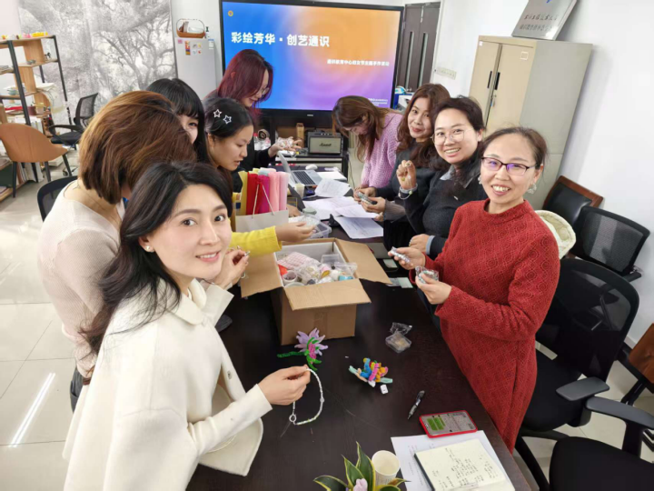 经过一个多小时的精心制作,一件件构思精巧、风格各异的手工作品陆续完成。老师们纷纷捧起自己的得意之作合影留念,镜头定格下的一张张灿烂笑颜,与手中的缤纷作品交相辉映,成为春日里最动人的风景。